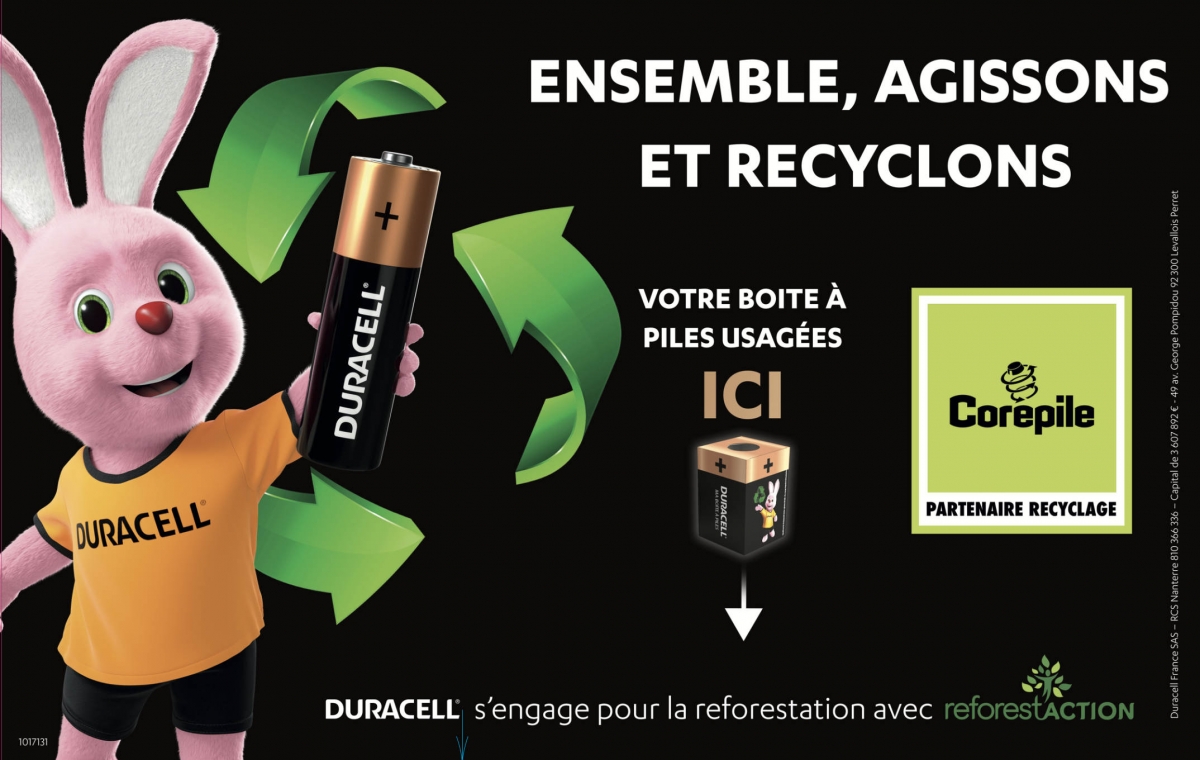 This year Duracell launched their campaign “Ensemble, agissons et recyclons” (“Let’s act together and recycle”) to increase consumer awareness about the importance of recycling batteries. Their goal is ultimately to improve the recycling rate, which is currently only 49% in France. As part of a partnership with Corepile, one of the eco-organisations that looks after the collection and recycling of batteries in France, a cardboard “box for used batteries” will be sent to all consumers, upon request, and will be made available in sales outlets from September. In this way, anyone can stockpile their used batteries at home in a single container and then bring them to retail outlets to be recycled. Gone are the days of used batteries that end up in the bin or that lie scattered about the house!