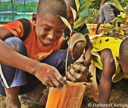 Trained to the management of their small maya nut, the children happily returned to home so as to pick out their tree. From now on, their mission is to take care of it all year long!