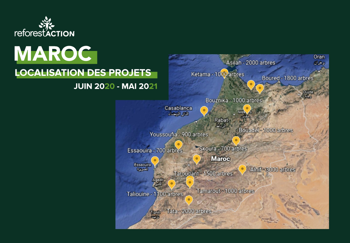 - In Aguerd, a village situated in the Essaouira province, 800 olive, grenade and lemon trees were planted in February 2021.