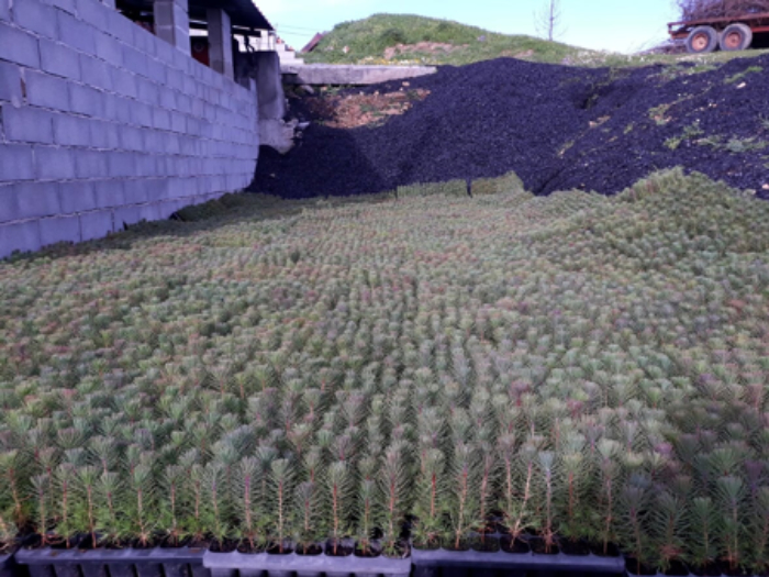 After passing through a caterpillar shredder, the seedlings in buckets were planted manually. Planting in a bucket facilitates the recovery of young seedlings, as opposed to bare root planting.