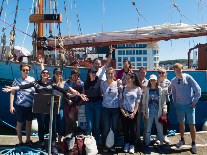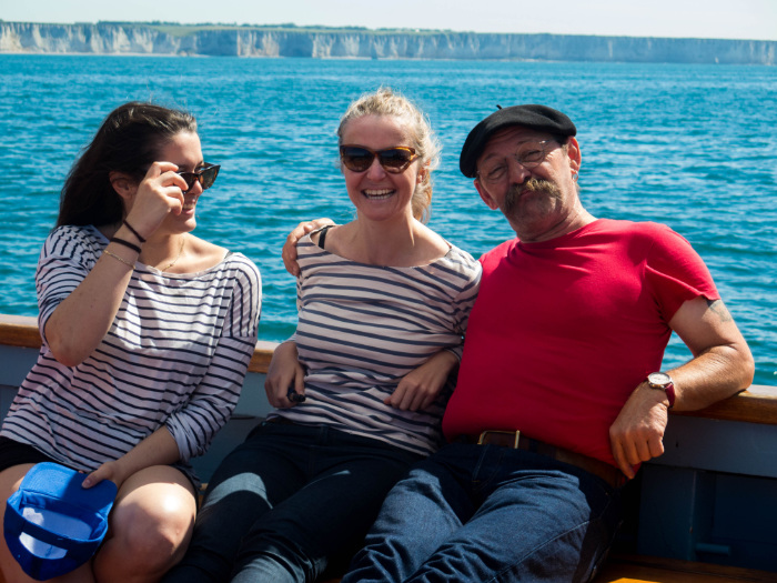 After a stop in a restaurant near the beach, the Green Team embarks on « Tante fine », proud oak boat.