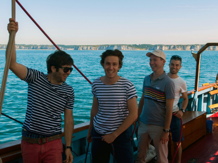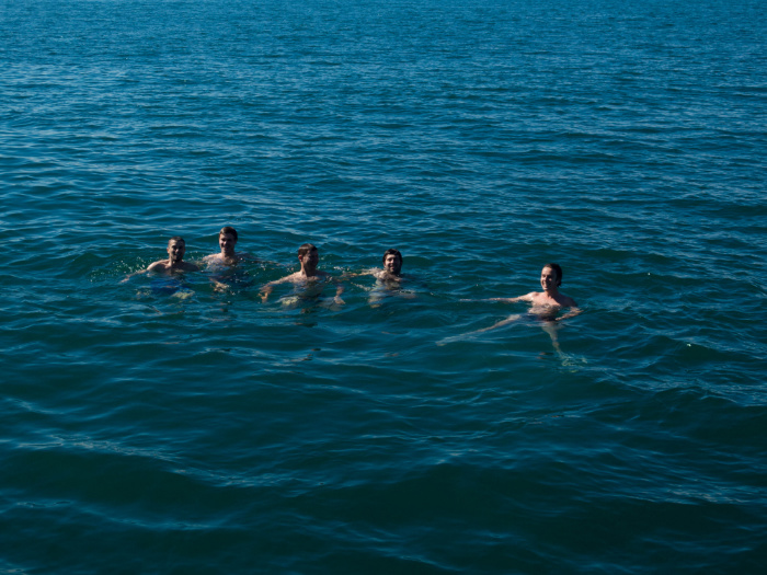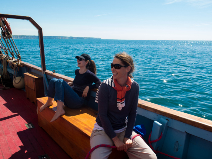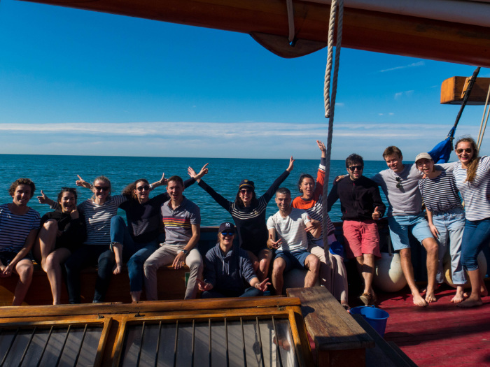 During the 4 hours at sea, the members of the team rediscover themselves outside from work. Anne-Lise immortalizes these precious moments, Caroline and Isabelle are sunbathing in the « hammock » at the front of the boat, Gustave, Thibaud, and Stéphane try angling, Carole, Stéphanie, Christelle and Fanny enjoy the sun on the deck and all the boys end up in the water!