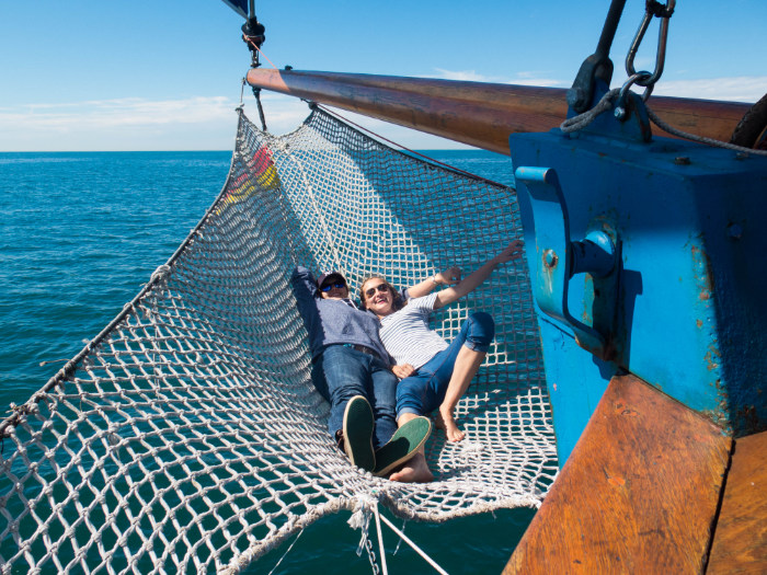 The captain, nicknamed Astérix, put us to the task and made us raise the sails.