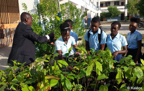 7405: It’s the exact amount of trees that were given out to two schools in Asile. A small Haitian town located in the district of Nippes, in the Southern part of the Caribbean Island. Lately, MBSH Junior High School and Saint-Joseph High School were seething with excitement! Everyone was expecting with eagerness the trees that were to be handed in. All gathered in their schoolyard, more than 700 students received each one 10 young cacao trees. Then, they planted them back in their home garden, following the advice of their teachers. Our partner’s agronomist – namely Kaléos, also provided them with some helpful information.