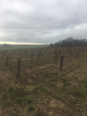 La plantation s’est déroulée sans difficultés en novembre 2020. Il a été nécessaire de poser des protections spéciales pour dissuader le gibier de se nourrir des jeunes pousses.