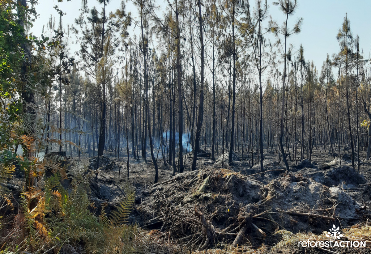 Avec 137 projets forestiers et 2 millions d’arbres plantés ou régénérés en Nouvelle-Aquitaine depuis 2010, l’implication de Reforest’Action est forte dans la région des méga-feux de Landiras et de La Teste-de-Buch, qui ont détruit plus de 20 000 hectares de forêts depuis le 12 juillet et ont causé l’évacuation de près de 37 000 personnes. A ce jour, si aucun de nos projets n’a été touché par les flammes, nous sommes malgré tout en première ligne du travail de reconstruction qui s’annonce.