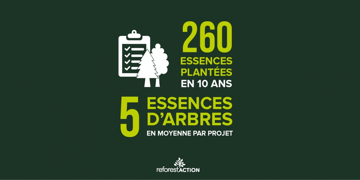 5 essences en moyenne par projet, 260 au total en 10 ans