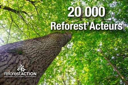 Ensemble, tous ces Reforest’Acteurs ont planté plus de 436 000 arbres en France mais aussi au Pérou, en Inde, au Sénégal, au Guatemala et en Equateur, chapeau ! Grâce à leur action au service de la forêt, des écosystèmes dégradés sont peu à peu restaurés, la biodiversité locale regagne du terrain partout où les arbres sont plantés et des populations en difficulté voient leurs revenus améliorés. Cette belle réussite est le signe que le concept de « reforestation participative » lancé par Reforest’Action il y a quatre ans suscite un engouement qui ne se dément pas. Sur www.reforestaction.com, chacun peu agir pour la forêt avec ses proches, ses collègues et amis et généré un impact positif concret sur l’environnement en plantant un arbre. Merci aux 20 000 Reforest’Acteurs pour leur engagement ! Au fait, si vous avez envie de planter un arbre aujourd’hui, c’est par ici. Ou peut être plutôt en offrir à vos amis ? C’est par là.