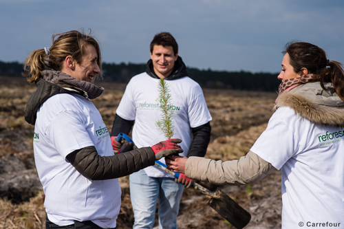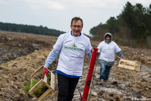 Le 16 mars dernier, Reforest’Action a achevé de planter 30 000 arbres dans les Landes en compagnie de clients et collaborateurs de notre partenaire Carrefour France, soutien financier de l’opération.