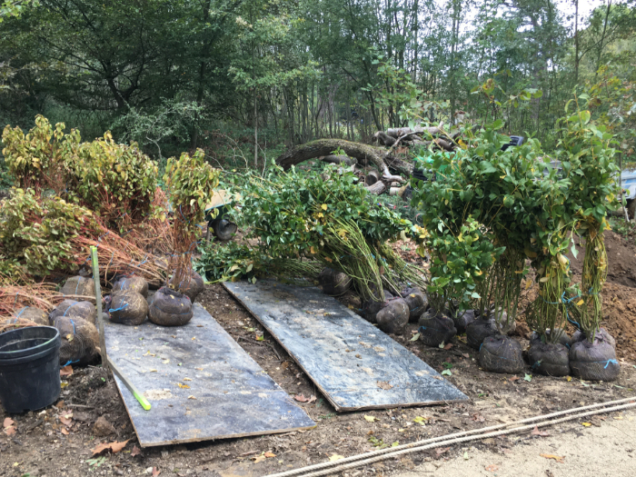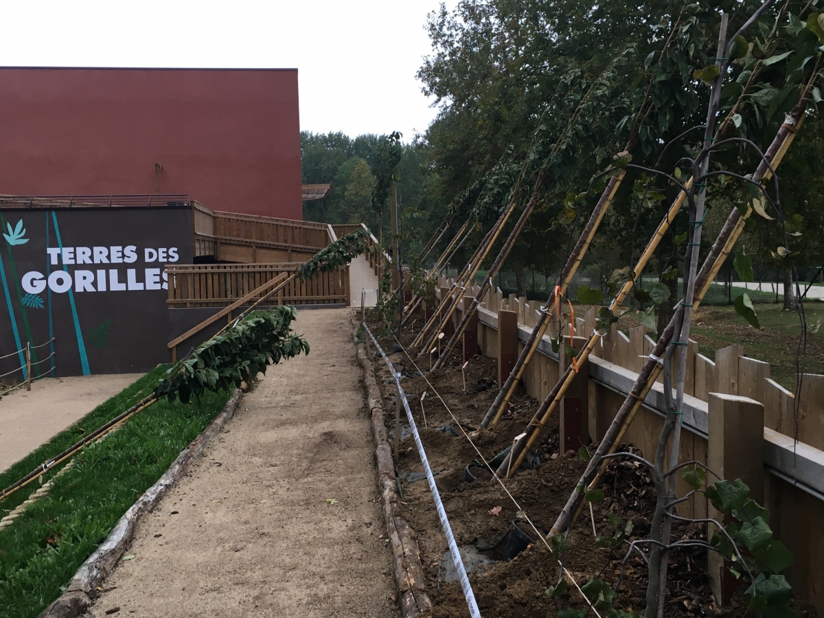 Le chantier avait été préalablement soigneusement préparé par l’équipe jardin du Parc de Thoiry. Les plants sélectionnés étant déjà grands, il a en effet été nécessaire de réaliser les trous devant les accueillir, puis de mettre à disposition l’engrais et les copeaux de bois indispensables à la plantation.