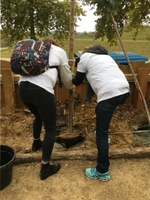 Après avoir installé les plants sur un lit de ce précieux engrais, les équipes de BNP Paribas ont complété avec de la terre, puis placé une couche de copeaux de bois.