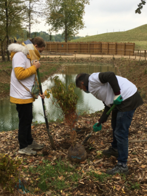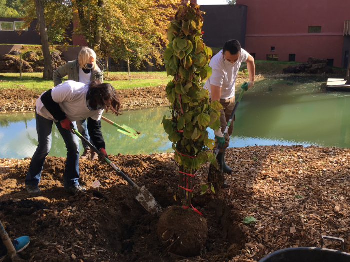 Les équipes Communication et Direction de l’Engagement du groupe ont commencé l’opération par la plantation de diverses essences, qui auront notamment un rôle ornemental aux abords de l’enclos des gorilles.
