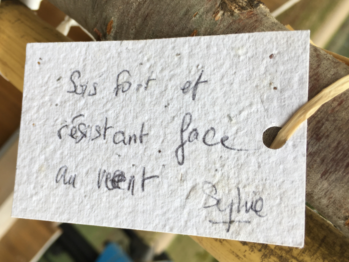 Afin d’exprimer leur engagement, ils ont enfin pu laisser un vœu aux jeunes arbres plantés par leurs soins grâce à des messages apposés sur des cartes ensemencées.