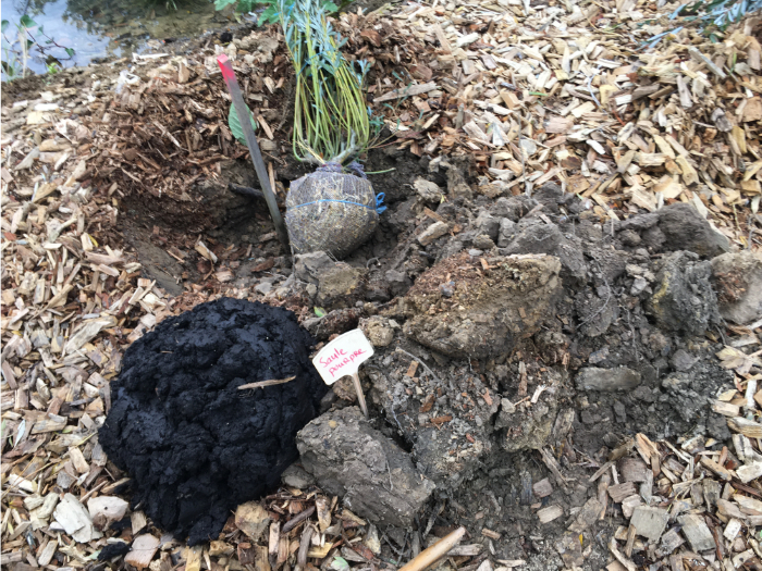 Ils ont ensuite déposé du digestat au fond des trous devant accueillir les plants. Il s’agit de résidus issus d’un processus de méthanisation de matières organiques naturelles (végétaux, fumier du Parc). C’est un excellent engrais, naturel et gratuit !