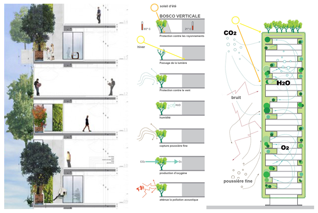 Imaginez des ciels urbains peuplés de forêts verticales, qui poussent le long des gratte-ciels. Imaginez une ville écologique, végétale et spacieuse, une ville à impact carbone positif, nourricière et génératrice de biodiversité. Telle est la ville du futur rêvée par les Français, selon l’enquête de l’Union Nationale des Entreprises du Paysage (UNEP) rendue publique en mars 2016. Dans un contexte de restriction budgétaire pour les collectivités territoriales, 6 Français sur 10 estiment que la création d’espaces verts devrait être la priorité de leur ville, avant même la construction de crèches ou de lieux culturels. Et pour leur donner de quoi inspirer leurs rêves, des projets exemplaires en matière d’écologie urbaine se développent déjà dans le monde entier. Des immeubles forêts à Milan et à Nanjing En 2014 naissait le Bosco Verticale, la première forêt résidentielle du monde à Milan, du travail de l’architecte italien Stefano Boeri. Deux immeubles de 76 et 110 mètres de hauteur ont été recouverts d’une forêt équivalant à 1 hectare d’arbres, d’arbustes et de plantes. Les bienfaits pour les appartements abrités derrière cette véritable forêt verticale sont multiples : protection contre la chaleur du soleil en été, isolement contre le vent, les nuisances sonores et la pollution, production d’oxygène et humidification de l’air. Mais c’est la ville entière qui bénéficie également de l’épanouissement d’une toute nouvelle biodiversité, en accueillant des oiseaux, des papillons, des coccinelles, des insectes et même des chauves-souris.