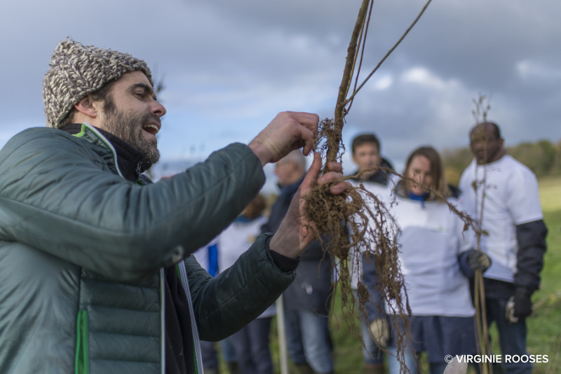 Encadrés par l’équipe de Reforest’Action et l’association Les Planteurs Volontaires, les participants ont ainsi reconstitué des haies en alternant la plantation d’arbustes et d’arbres, parmi lesquels des fusains, des chênes, des charmes, des érables sycomores, des viornes, des ormes, des noisetiers ou encore des églantiers. 596 plants ont été mis en terre en deux heures grâce à la motivation sans faille de nos planteurs. Et au printemps prochain, de nombreuses abeilles viendront à nouveau butiner ces haies porteuses de nectar.