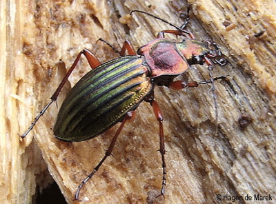 Bientôt la rentrée. La forêt proche de chez vous entame peut être déjà sa lente mue en se drapant de premiers tons bigarrés annonciateurs de l’arrivée de l’automne. Période privilégiée pour une balade en forêt. Profitez-en pour rechercher les espèces du mois en lien avec l’Observatoire de la Biodiversité des Forêts et ainsi compléter l’Inventaire National du Patrimoine Naturel. Ce mois-ci, Reforest’Action vous propose 3 nouvelles espèces à identifier au gré de vos flâneries forestières. Le carabe à reflets cuivrés : avec 1 à 3 cm de mensurations, ce coléoptère a de quoi séduire. A coup sûr vous ne raterez pas sa tête cuivrée et ses ailes vert turquoise sur lesquelles se dessinent de fines bandes noires. Amateur de lieux humides et sombres, le carabe à reflets cuivrés niche dans les souches, les troncs pourris, sous la mousse, dans la terre des talus ou sous les écorces déhiscentes. Où le trouver.