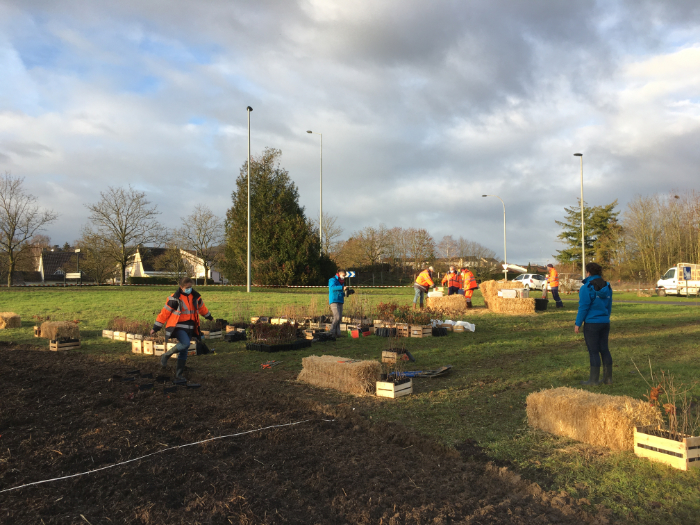 Pour ce faire, la commune a matérialisé le contour de la zone sur la parcelle et a réalisé le travail du sol pour décompacter la terre. Ensuite, Reforest'Action a organisé l'apport d'amendements (fumier et compost) répandus sur la zone, puis la commune a homogénéisé la surface pour préparer le terrain à la plantation. Celle-ci a débuté le 14 décembre 2020 par un évènement participatif incluant de 40 élèves de classes primaires, ainsi que nos contributeurs, et a ensuite été finalisée par le service espace vert de la ville d’Épernay.