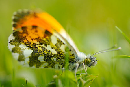 Lors de vos escapades en forêts ce mois-ci, tentez d’observer l’aurore. Ce petit papillon de toute beauté évolue dans la France entière jusqu’à 2200 mètres d’altitude. Il tient son nom des couleurs dorées de la lumière de l’aube. C’est en effet d’orange qu’est tacheté le haut des ailes des mâles. Si la femelle n’arbore pas ce signe distinctif, les deux sexes sont marqués de rayures verdâtres irrégulières qui recouvrent partiellement le fond blanc des ailes. Côté taille, il peut mesurer jusqu' 4 cm.