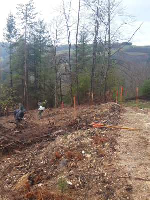 Afin de retrouver un boisement vigoureux, le propriétaire a choisi de planter un mélange d’essences résineuses et feuillues. La plantation d'un mélange d'essences différent de celles présentes sur le massif, ainsi que la création d'une lisière forestière feuillue favorisera le développement d’une riche biodiversité.