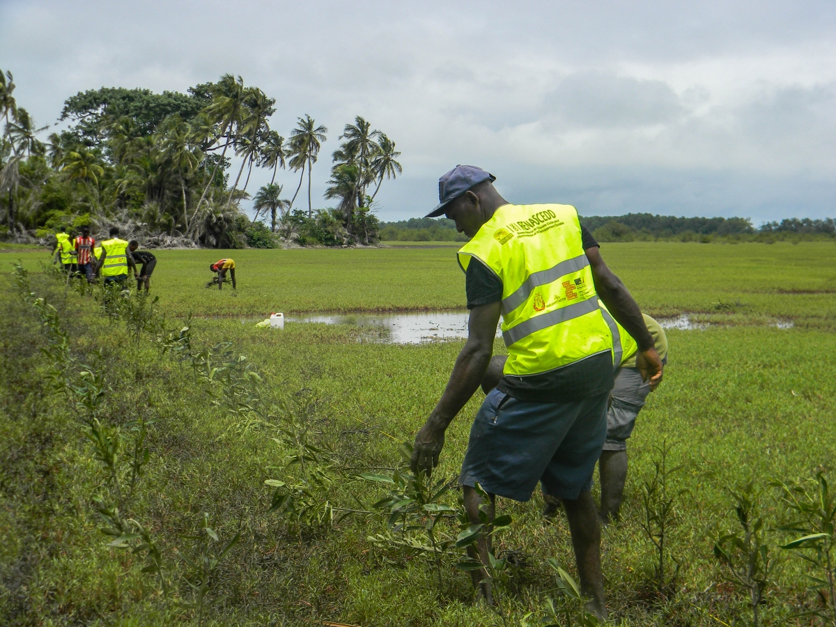 La restauration des mangroves, sur les littoraux de Douprou (près de Boffa) et de Kaback, a constitué le premier volet de la campagne de reboisement. Touchées par la déforestation, ces forêts situées entre terre et mer sont essentielles pour les communautés locales. Leur disparition engendre une remontée saline qui rend les terres littorales incultivables. Des palétuviers ont ainsi été plantés en bord de mer afin de lutter contre l’érosion des littoraux, de préserver les villages environnants de la montée des eaux, et de préserver la biodiversité des littoraux, dont dépendent les populations, notamment pour leur alimentation, via la pêche.