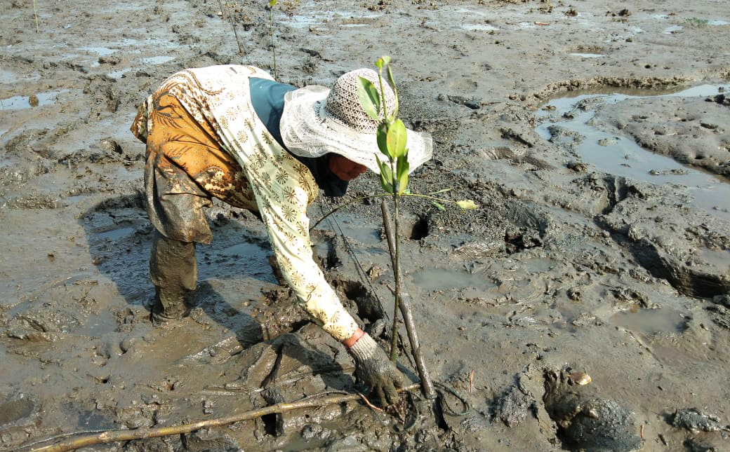 22 000 palétuviers ont été plantés en juillet 2019 pour restaurer la mangrove dans les environs du village de Lubuk Kertang et de Sicanang, à Sumatra.