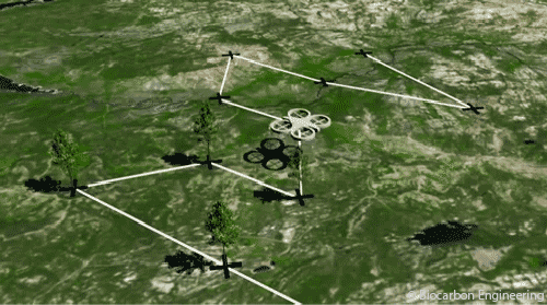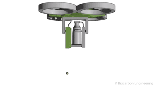 La technique fonctionne en 2 temps. Le drone survole d’abord la zone déforestée pour en réaliser une cartographie 3D qui est ensuite analysée. Puis à une hauteur d’environ 2 mètres du sol, le drone sème, sur les surfaces identifiées, des cosses biodégradables contenant chacune 2 graines germées et des nutriments. C’est en somme une technique à mi-chemin entre les plantations manuelles et le largage de graines sèches.
