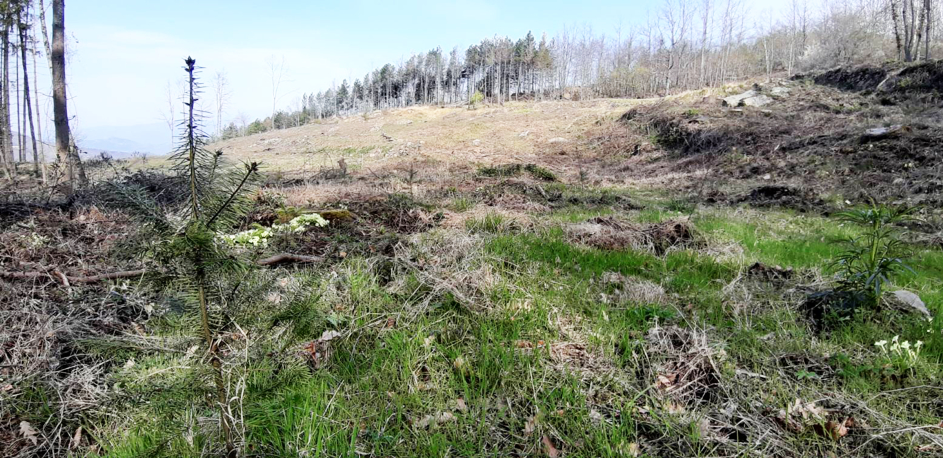 En favorisant la régénération naturelle d’essences autochtones variées (chênes, châtaigniers, hêtres et bouleaux) et en plantant des douglas en complément, ce projet permet d’offrir de nouveaux habitats à la biodiversité locale et à la grande faune. Cette plantation est favorable à la réinsertion du loup dans cette forêt.