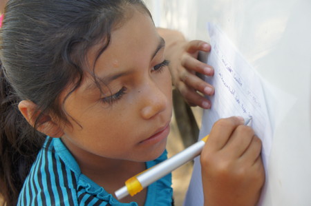 Après le jeu, Nicolas a demandé aux enfants d’écrire une lettre aux enfants des Landes, qui feront bientôt de même. Il y a eu beaucoup d’application, alors que les enfants, dont la rentrée des classes était lendemain, n’avait comme bureau que la carrosserie des voitures du projet ! Nicolas a rapporté les lettres en France et les a donné à l’Inspection d’académie qui va les distribuer. Bientôt chaque classe en ayant reçu une fera de même. Le début d’une série d’échange et de découvertes sur les habitudes des uns et des autres : à quoi te sert-elle ta forêt à toi ? Auteurs : Kinomé et Reforest'Action