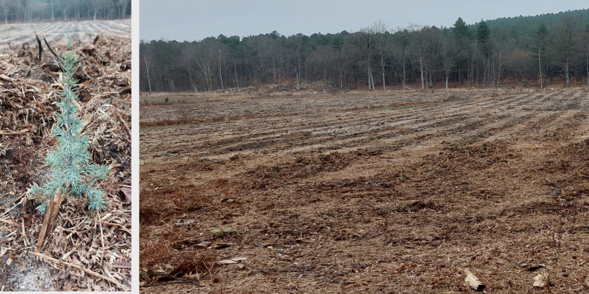 La plantation devait initialement avoir lieu au printemps 2021 mais a été retardée par manque de temps et réalisée durant l’automne-hiver 2021-2022. En amont de la plantation, une préparation du sol a été réalisée par l'ameublissement de la terre, afin de faciliter la plantation et la bonne reprise des plants. La terre ameublie permet en effet une meilleure croissance des racines et limite le développement, dans les premières semaines, de la végétation qui pourrait concurrencer les jeunes plants en termes de besoin en lumière et en ressources en eau. Ce projet multifonctionnel sera source de nombreux bénéfices sur le long terme. Le massif géré de manière durable pourra, en plus d’accueillir une biodiversité riche, fournir du bois de qualité et assurer l’ensemble des services écosystémiques propres à la forêt.