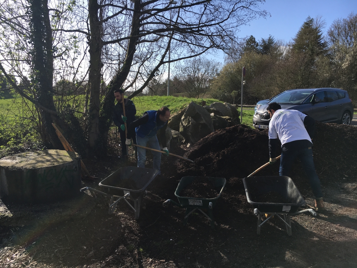 Une dizaine de collaborateurs était rassemblée aux côtés de Carmen Munoz Dormoy, Directrice de CITELUM, et de Pierre-Antoine Chauvet, Directeur Santé, Sécurité et Environnement de l’entreprise. Encadré par Reforest’Action et Haie Magique, notre partenaire technique sur le terrain, le petit groupe a d’abord procédé au paillage des jeunes plants financés par CITELUM et mis en terre l’année passée au même endroit, afin de nourrir le sol et conserver la fraîcheur de la terre en vue de l’arrivée de l’été.