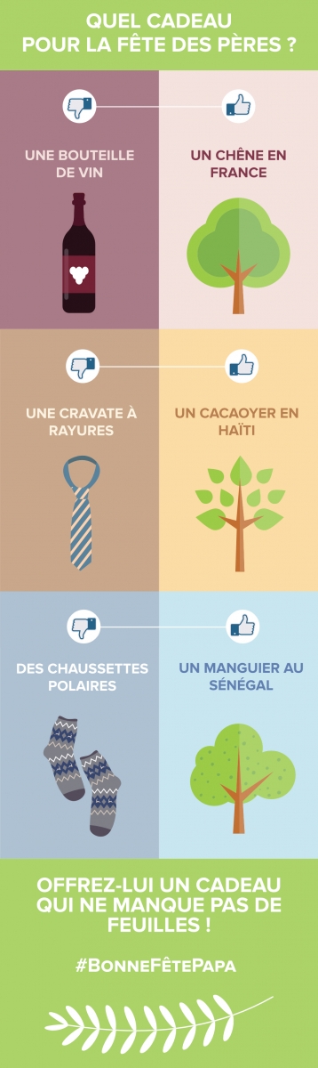 Cette année, pour la Fête des Pères, surprenez votre Papa avec un cadeau original et écolo : offrez-lui un arbre à planter dans le pays de son choix !