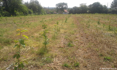 Si la surface est modeste, environ un demi hectare, le projet ne manque pas d’atouts sur le plan environnemental. D’abord parce qu’il vient boiser un terrain en friche à Rocheservière, petite bourgade de Vendée. Autre intérêt, le site se situe au cœur d’un corridor biologique. La vaste diversité des 720 arbres mis en terre cet hiver participera concrètement à favoriser le développement de la biodiversité locale. Chêne sessile, cormier, frêne commun, merisier, charme, châtaigner, érable champêtre ou encore prunier myrobolan, au total pas moins de 9 essences de feuillus différentes ont été plantées.
