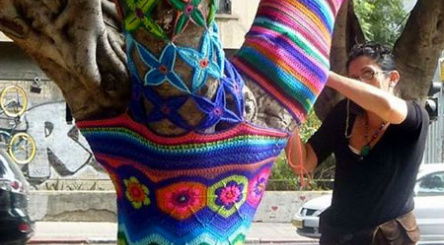A partir d’octobre 2015, les arbres de Saint-Etienne et des villes environnantes seront habillés de tricots bariolés dans le cadre d’une opération participative baptisée Auprès de nos arbres.