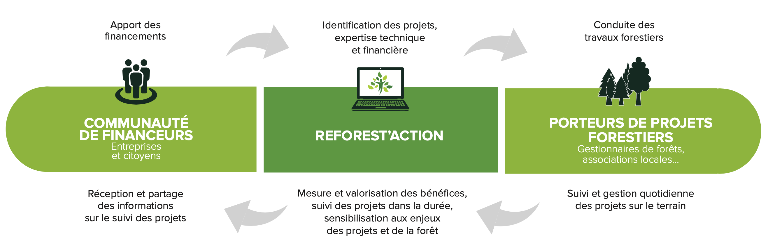 Pour mener à bien notre mission, nous avons besoin de fonds et de projets forestiers de qualité portés localement par des experts du terrain. Cette approche repose ainsi sur 3 grands piliers :